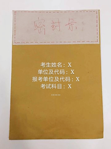 5、注:公共课考试才会有这样的档案袋,专业课考试有的不是档案袋或是普通的档案袋,这是根据报考院校的规格而来的。试卷封装后请考生仔细检查试卷袋上的信息是否填写完整。