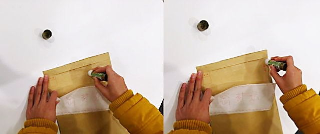 4、把密封条贴上去。友情提示:密封条很薄,固体胶不要涂太多。