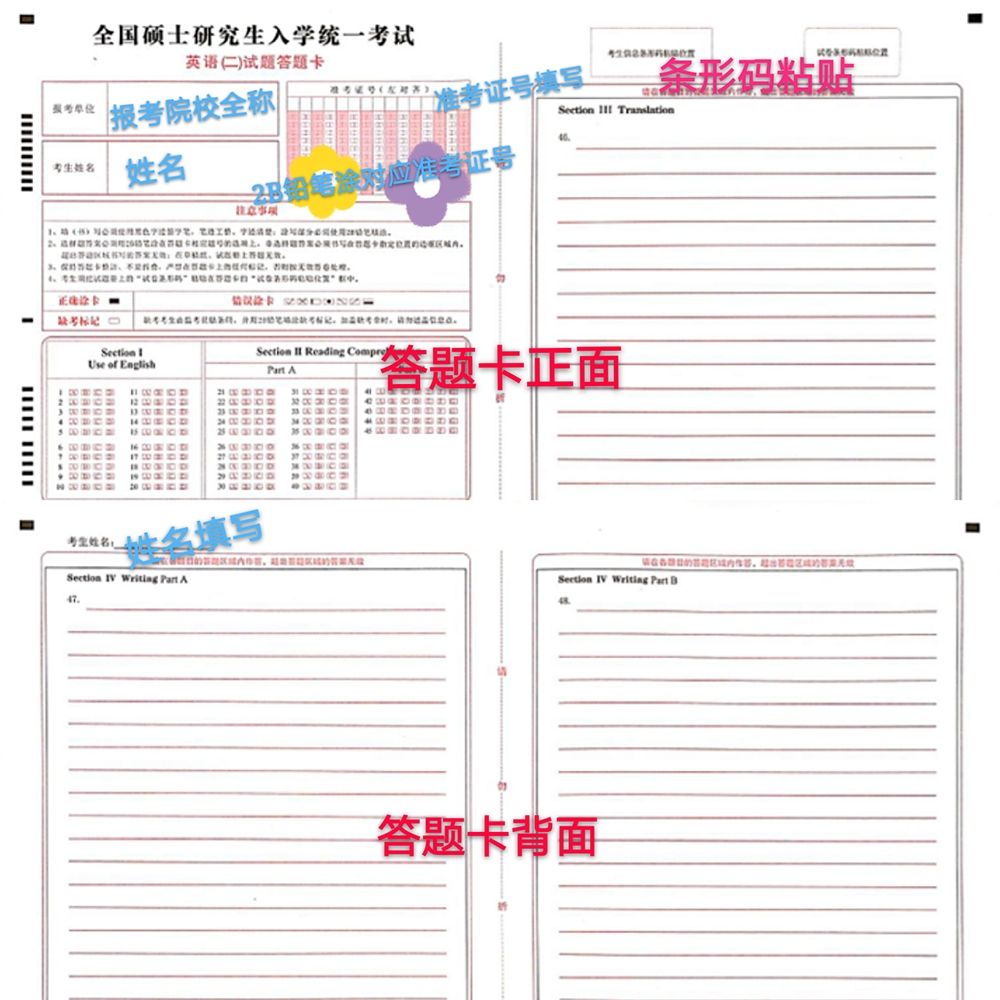 下面以 204英语(二)答题卡为例说明填涂信息: