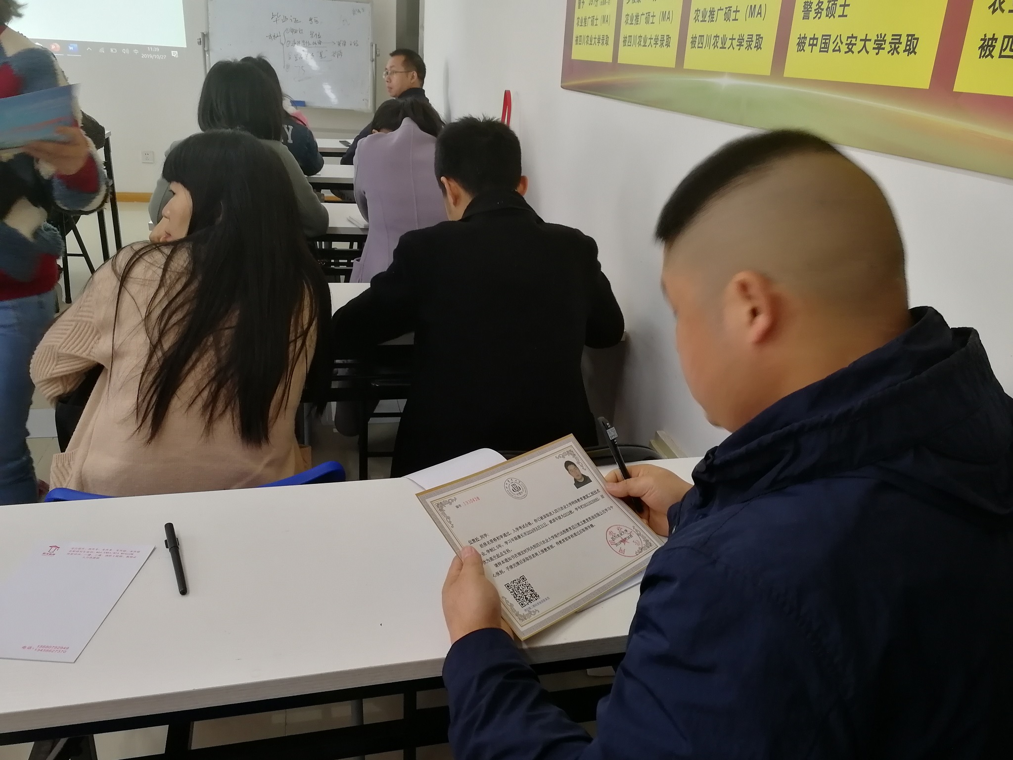 最后,赵老师亲自为到场的学生代表颁发了2019秋四川农业大学网络教育新生录取通知书!